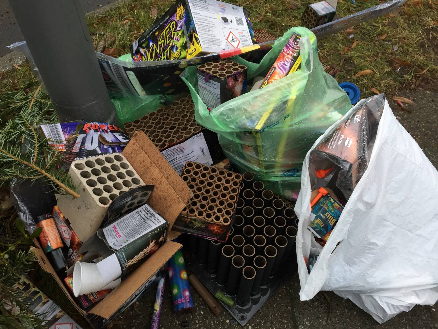 Bei Flaschen, Böllern und entschmückten Weihnachtsbäumen